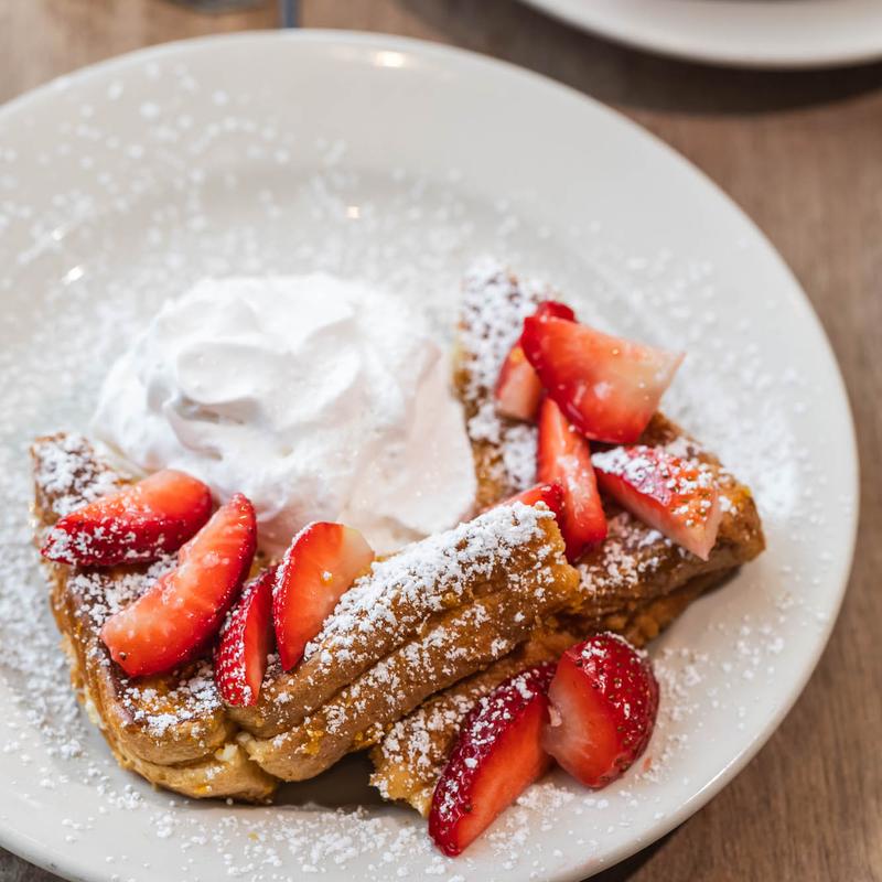 Peanut butter stuffed brioche with a corn flake crust. Served with syrup.
