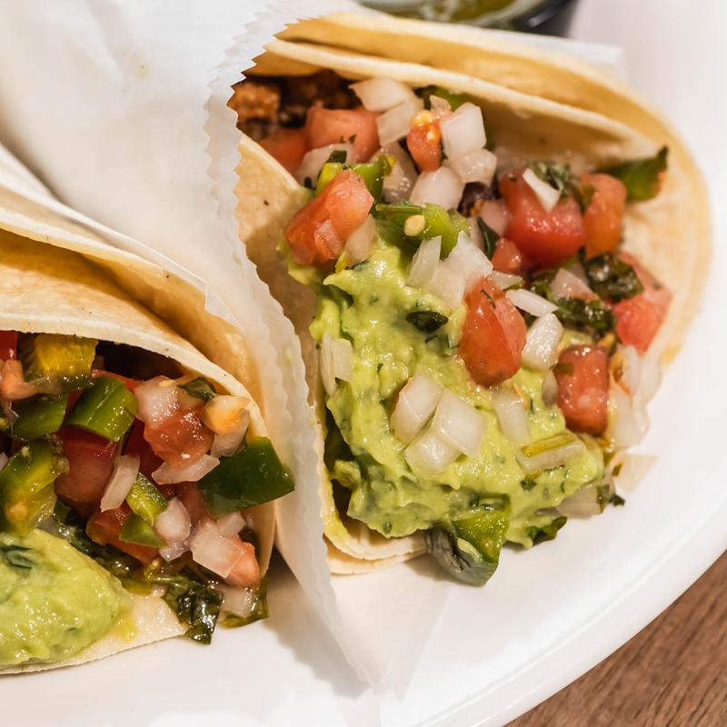 3 Tacos, choice of chorizo, bacon, or black beans, cheddar scrambled eggs, salsa verde, pico, cheddar.