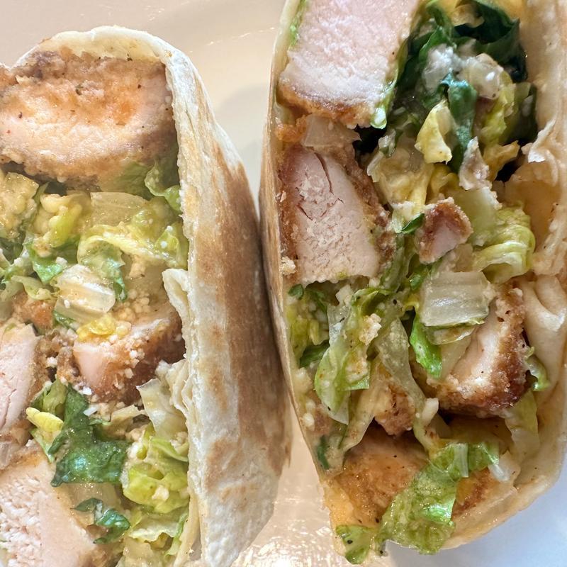 crispy chicken, Caesar dressing, parmesan, croutons and Romain